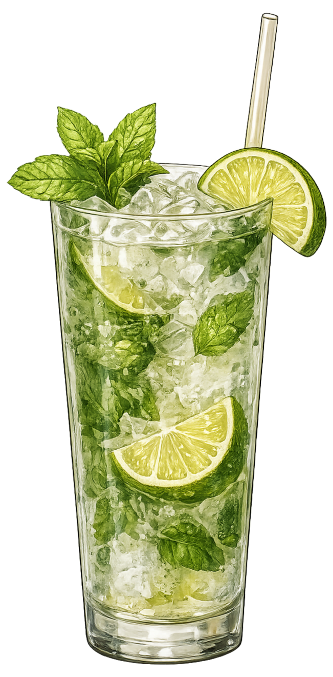 White Rum, Fresh Lime Juice, Simple Syrup, Mint, Soda Water